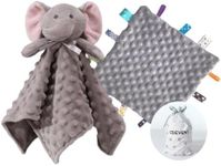CREVENT Cozy Plush Baby Security Blanket Loveys for Baby Boys and Girls, Minky Dot Front + Sherpa Backing with Animal Head (Grey Elephant + Tag)