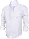 Barry.Wang Mens Formal Suit Vest Slim Fit V-neck 2 Pockets Wedding Party Dress Waistcoat, B White, Large