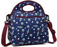 Kasqo Lunch Box Bag for Kids,Neoprene Cute Toddler Boys Lunch Tote Mini Cooler Bag Bento Box Lunch Containers with Front Pocket for School Daycare Pincic,Navy Astronaut