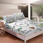 Twin XL Bells Bed Sheet Set White Circle Fitted Sheet Castle Bedroom White Sheet Set for Men Women Adult 2pcs (1 Fitted Sheet + 1 Pillow Case),Twin XL Size