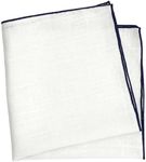 BELLUNO White Pocket Square with Embroidered Edge, Navy, 11.8 in